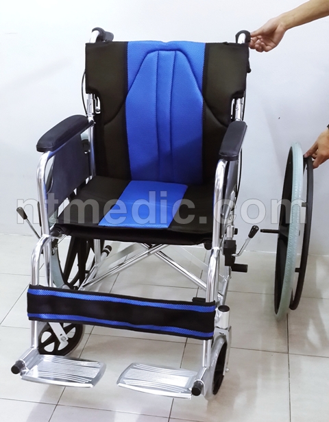 รถเข็นผู้ป่วยพับได้ แบบถอดล้อได้ มีเบาะรองนั่งและเบาะรองหลัง NT1262
